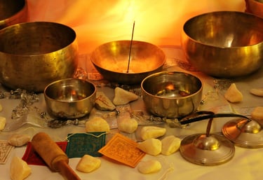 Divers outils peuvent accompagner les massages (bols tibétains, les huiles essentielles,...)